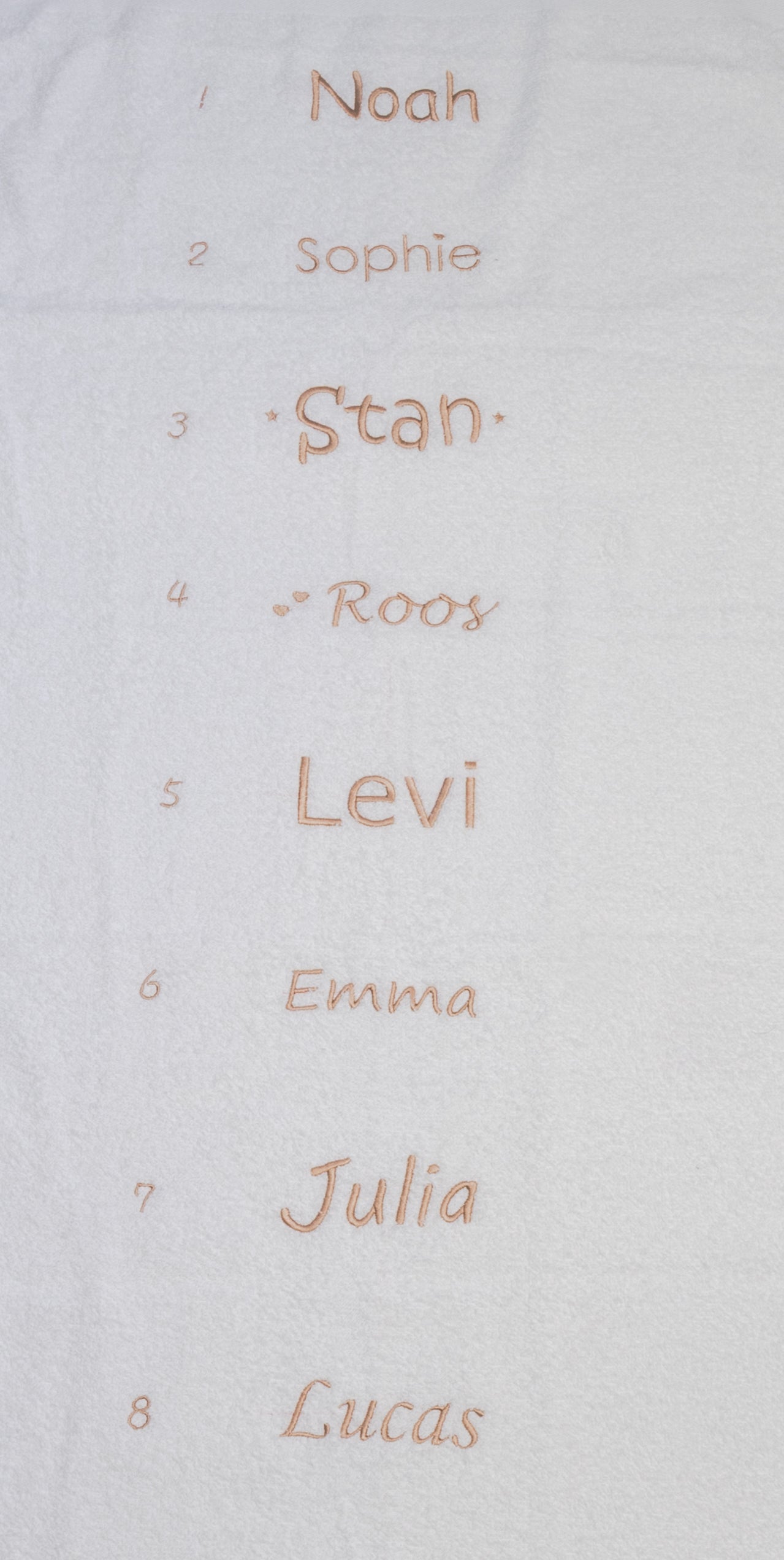 Verwen de allerkleinsten met zachte, stijlvolle én gepersonaliseerde cadeaus. Perfect als kraamcadeau of voor je eigen kindje. Ontdek onze schattige slabbetjes, warme babycapes, comfortabele badjassen én lieve teddy tasjes met naam of afbeelding geborduurd, beschikbaar in diverse kleuren.